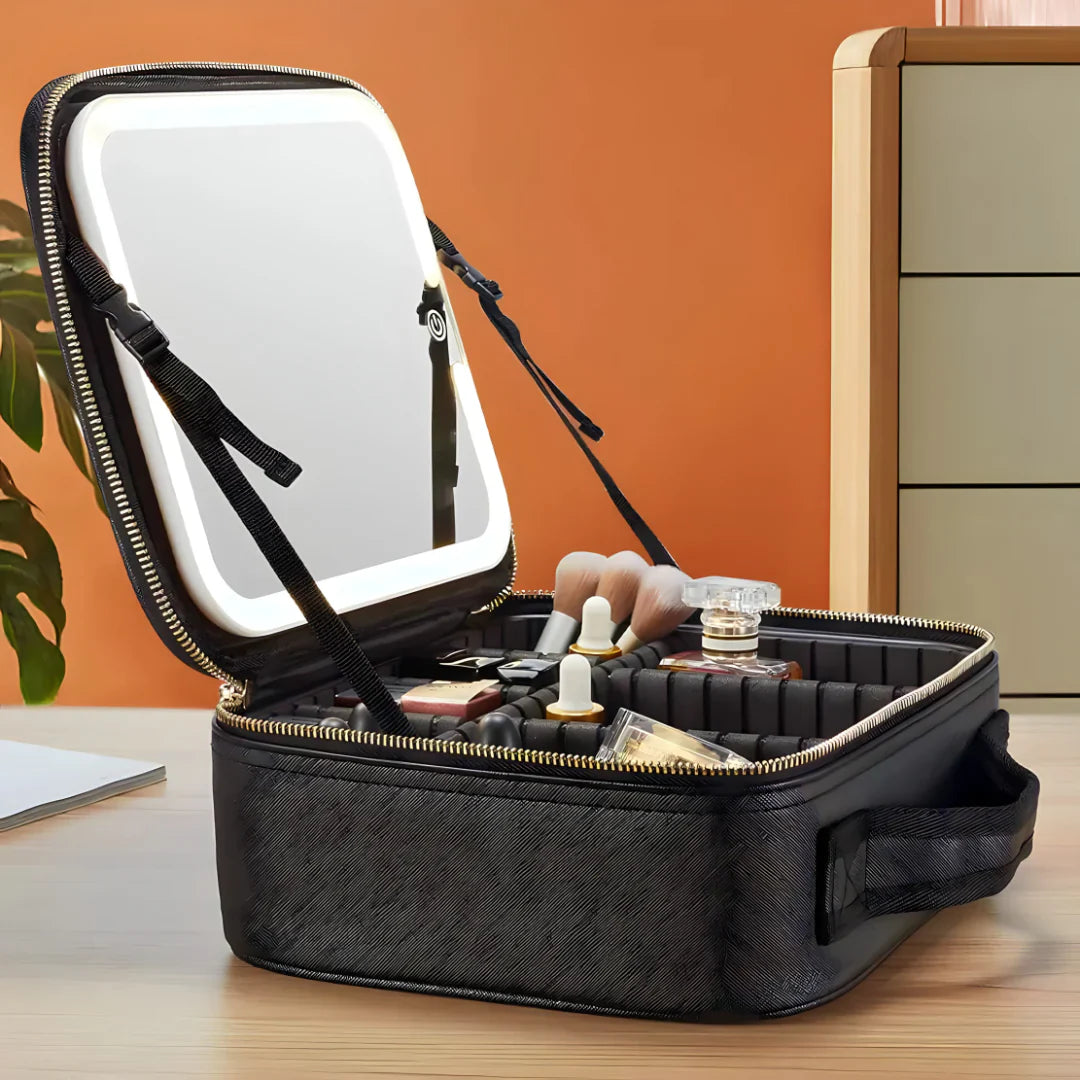 Zamislite elegantno i praktično rešenje koje vam omogućava da organizujete sav svoj kozmetički pribor i uvek imate idealno svetlo za besprekorno nanošenje šminke, bilo gde da se nalazite.